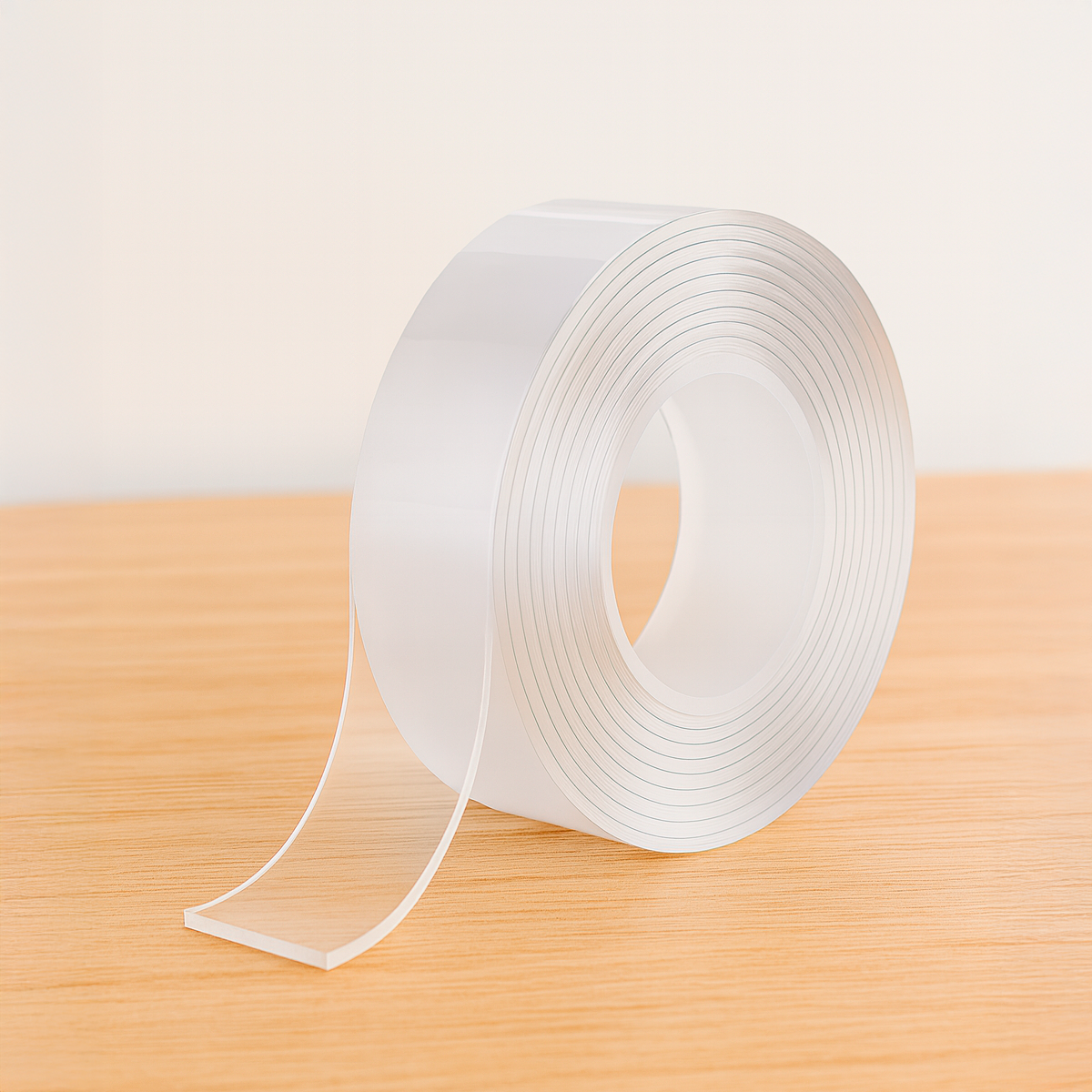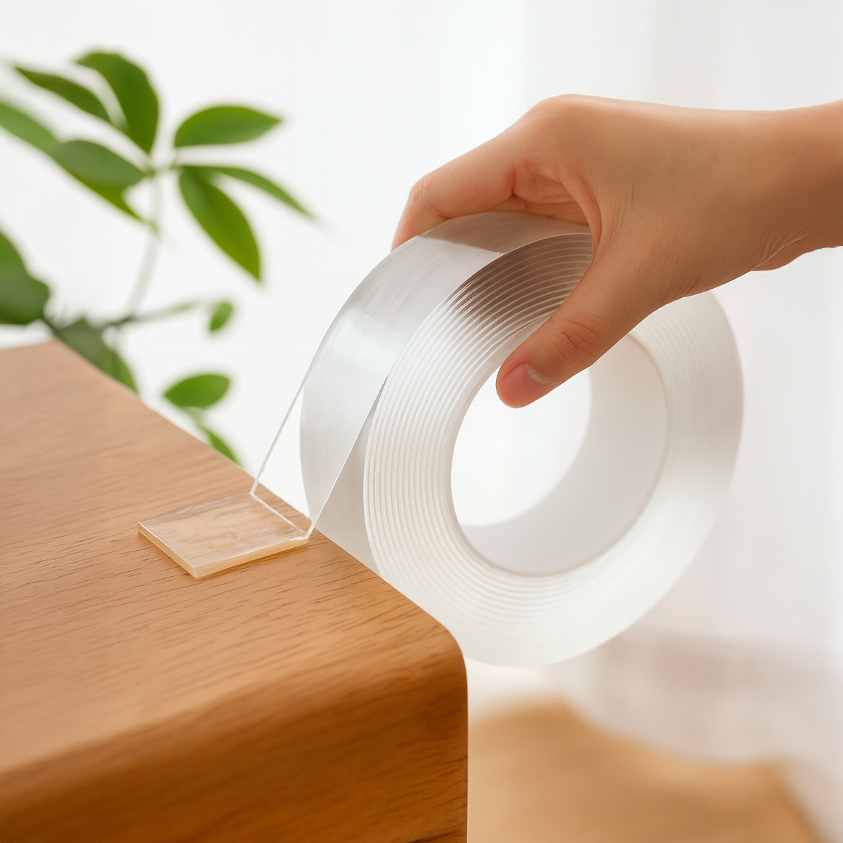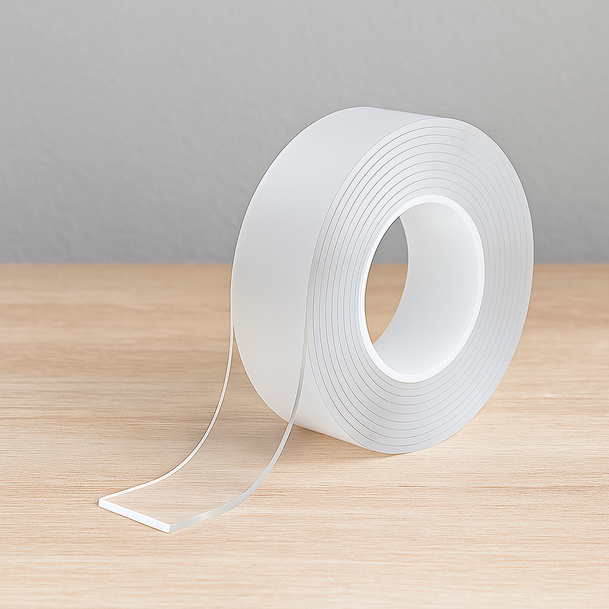 Cinta adhesiva de doble faz con gran poder de sujeción, ideal para fijar objetos sin necesidad de clavos ni tornillos.
