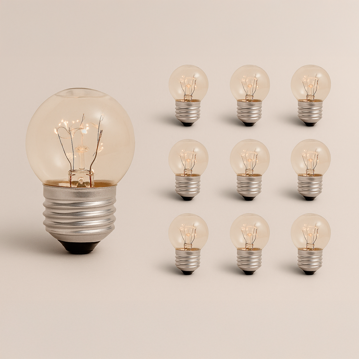 Pack de 10 lámparas incandescentes tipo gota, perfectas para decorar con estilo cálido y clásico.