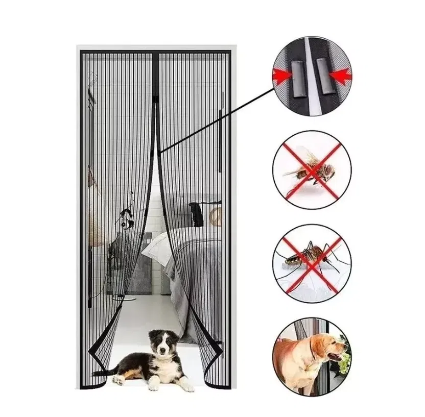 Las sujeciones magnéticas se cierran suavemente para evitar que ingresen los insectos. Es ideal para usar en puertas de hasta 2.10 mts de alto x 1 MT de ancho. Se abre sin esfuerzo y se cierra de forma segura con imanes inteligentes.