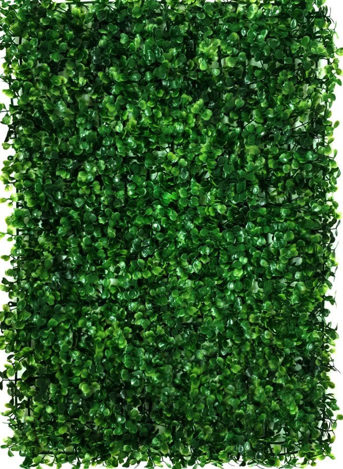 Es una excelente opción decorativa con dimensiones de 40x60 cm por panel, fabricado en PVC de alta calidad. Su diseño proporciona una cobertura completa sin espacios vacíos, compuesto por 308 ramas que crean un efecto natural y tupido. Es fácil de instalar gracias a su malla trasera, que permite montarlo sobre diversas superficies. Además, no requiere mantenimiento especial y mantiene su aspecto durante todo el año. Cuatro paneles cubren aproximadamente un metro cuadrado, lo que lo convierte en una opción ideal para cubrir grandes áreas de manera rápida y eficiente. Es versátil y se puede combinar con otros paneles para crear diseños personalizados, siendo perfecto para embellecer muros y aportar un toque verde sin complicaciones.