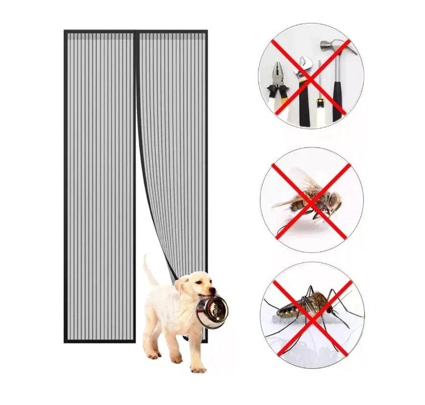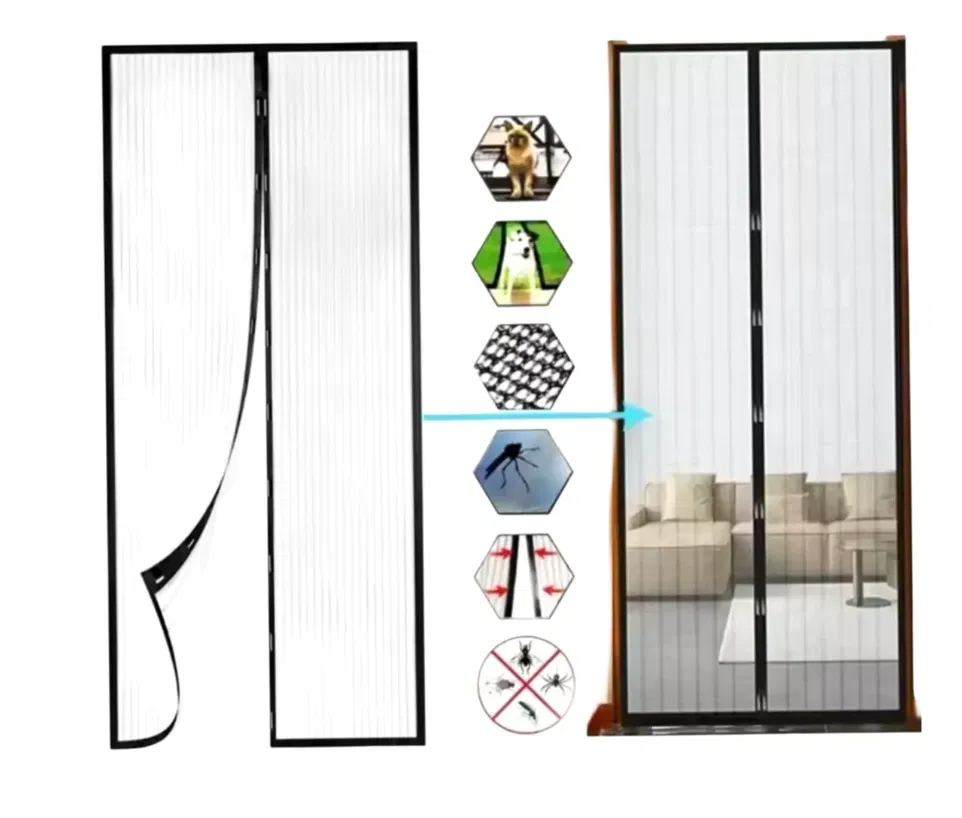 Esta version Premium de las cortinas antimosquitos posee un tramado y costuras mas reforzadas, ademas de que el kit de instalacion posee ademas de las chinches, un rollo de Velcro autoadhesivo listo para su colocacion.