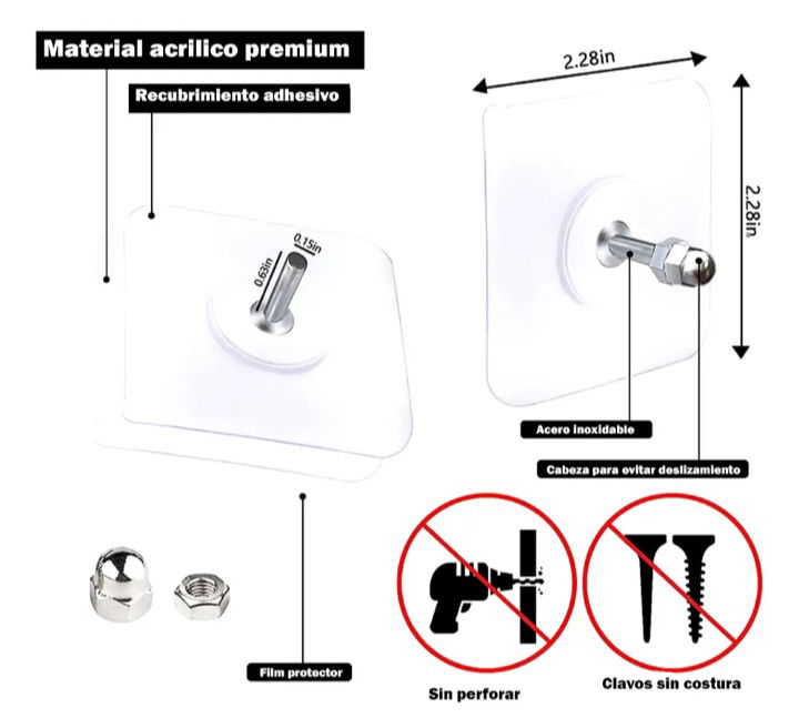 Percheros tornillo para que cuelgues lo que desees en la pared sin necesidad de agujerearla. Ideal para colocar en superficies lisas, su instalación es simple y sencilla. Estos ganchos de plástico transparente tienen un acabado elegante que se adapta a cualquier decoración. Con una profundidad de 5 cm, ofrecen un soporte robusto y seguro. El sistema de fijación adhesivo garantiza una instalación rápida y sin complicaciones, ideal para el hogar, baño o cocina. Este modelo de gancho tornillo adhesivo es perfecto para quienes buscan una solución práctica y estética sin dañar las paredes. El pack contiene 4 ganchos